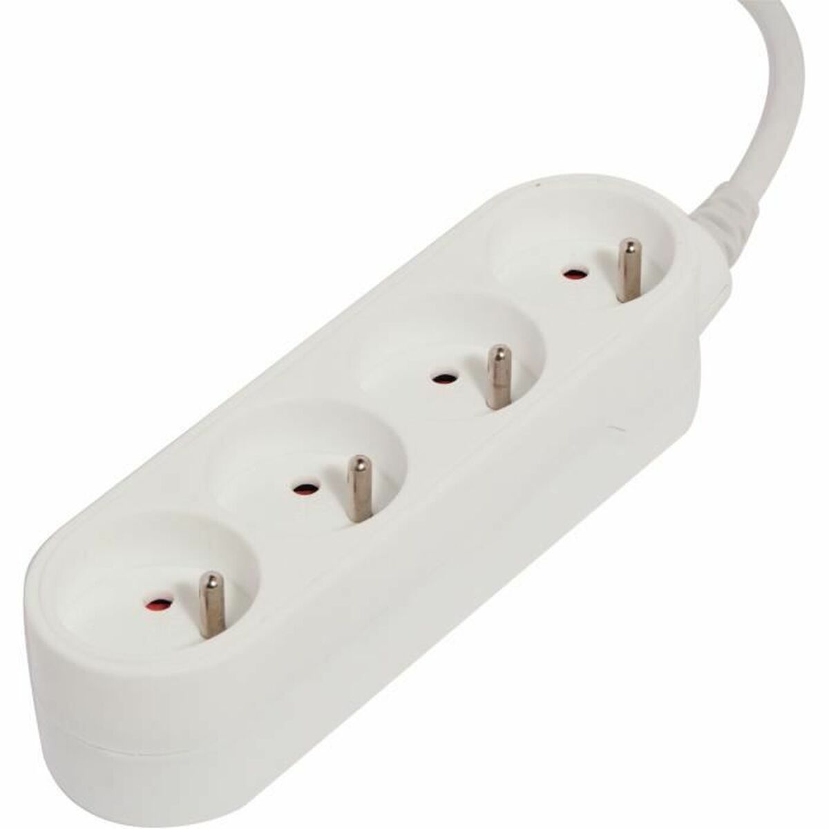 The Chacon multiple socket block or power strip is an essential accessory for those who need to safely and efficiently expand electrical connectivity at home or in the office. This model features a simple and functional design in white color, made of durable plastic that provides lightness and long-lasting use, with an approximate weight of 340 grams for easy handling and placement. It has four power outlets with a capacity of 16 amperes each, supporting a combined maximum power of 3500 W, allowing multiple electrical devices to be connected simultaneously without overload risk. It includes a 1.5-meter cable that offers flexibility for positioning near power sources. The product is equipped with a EU-type plug, the European standard, ensuring direct compatibility with electrical installations common in Spain and other EU countries. Its construction meets basic electrical safety requirements to protect connected devices. This power strip is a practical solution for managing multiple electrical connections in limited spaces or for equipment requiring organized power distribution. In summary, the Chacon design block combines functionality, adequate capacity, and standard materials to offer a reliable and straightforward option that facilitates expanding power outlets with full assurance.