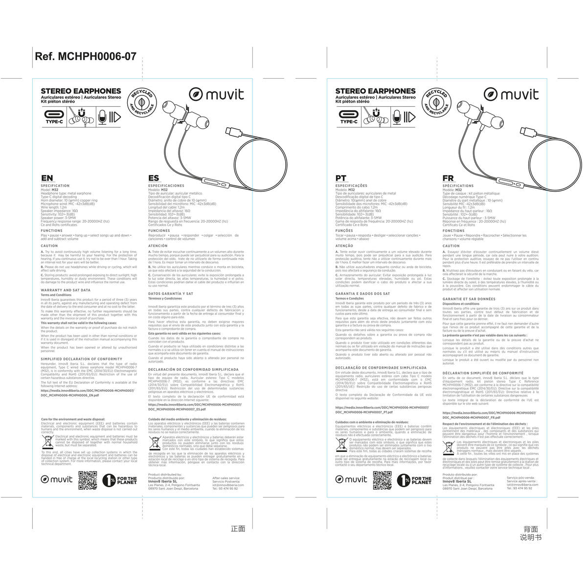 Headphones with Microphone Muvit M32 Black